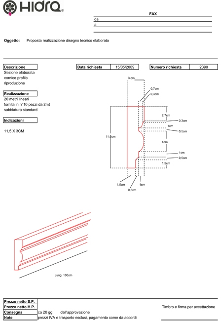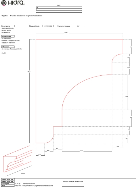 Studi tecnici e punti vendita possono quindi ricercare una vasta serie di profili architettonici, cornici, sottogronde, marcapiani, dasce o bugne, tra la gamma dei modelli inseriti a catalogo, oppure elaborare un modello su proprio disegno senza alcun costo aggiuntivo. E' a disposizione infatti un efficiente studio tecnico, per la realizzazione di modelli o attuazione di modifiche, dietro indicazioni e prospetti della committenza.